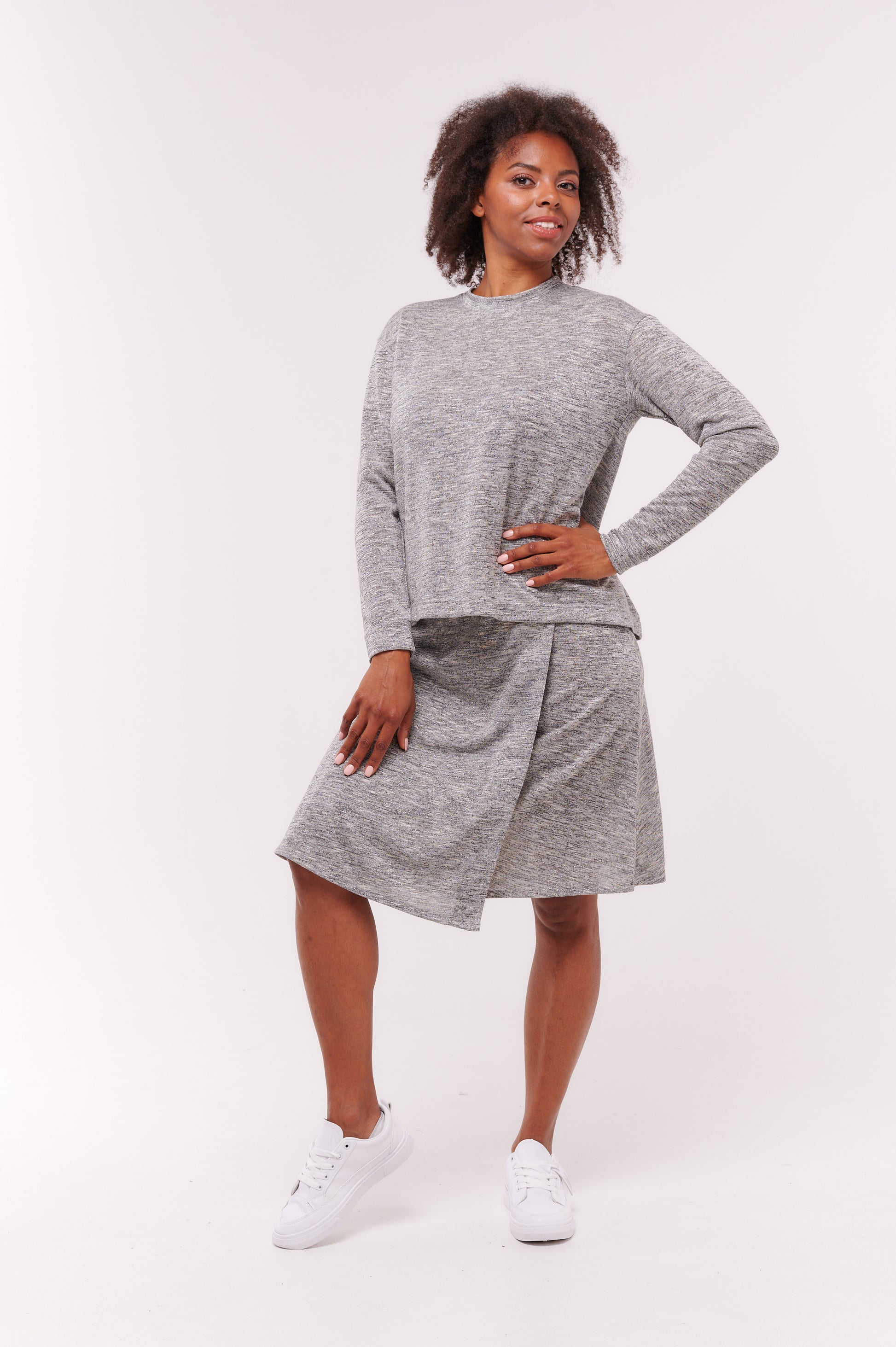 Thank you so much for taking the time to leave a review for our Scarlet Wrap Skirt Silver! We are so happy to hear that you love the full look and that the skirt and long sleeve back wrap top make a cute set. We appreciate your support and hope you continue to enjoy your new outfit!