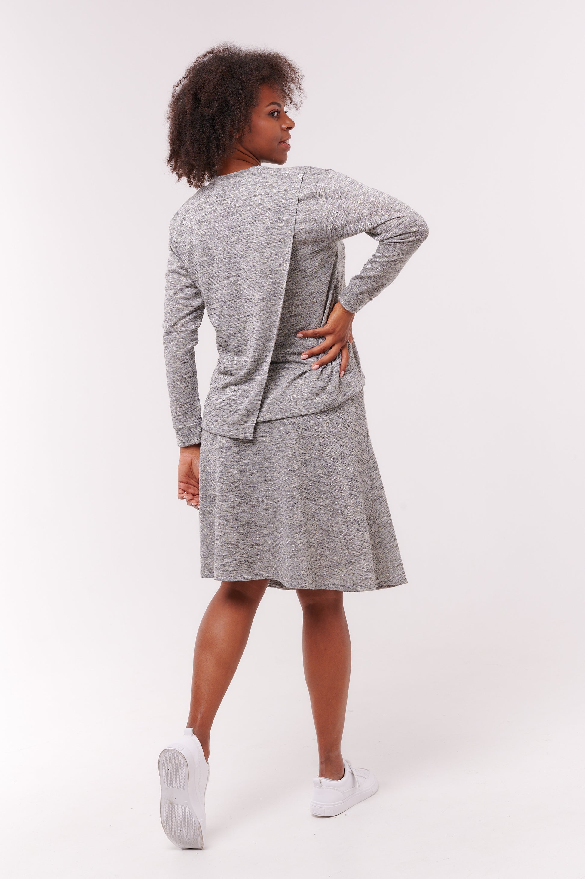 The skirt fully wraps the body, not leaving any awkward open spaces when fully fastened. The A-line cut is flattering and flares to allow a wide range of motion, as well as extra comfort to the wearer.