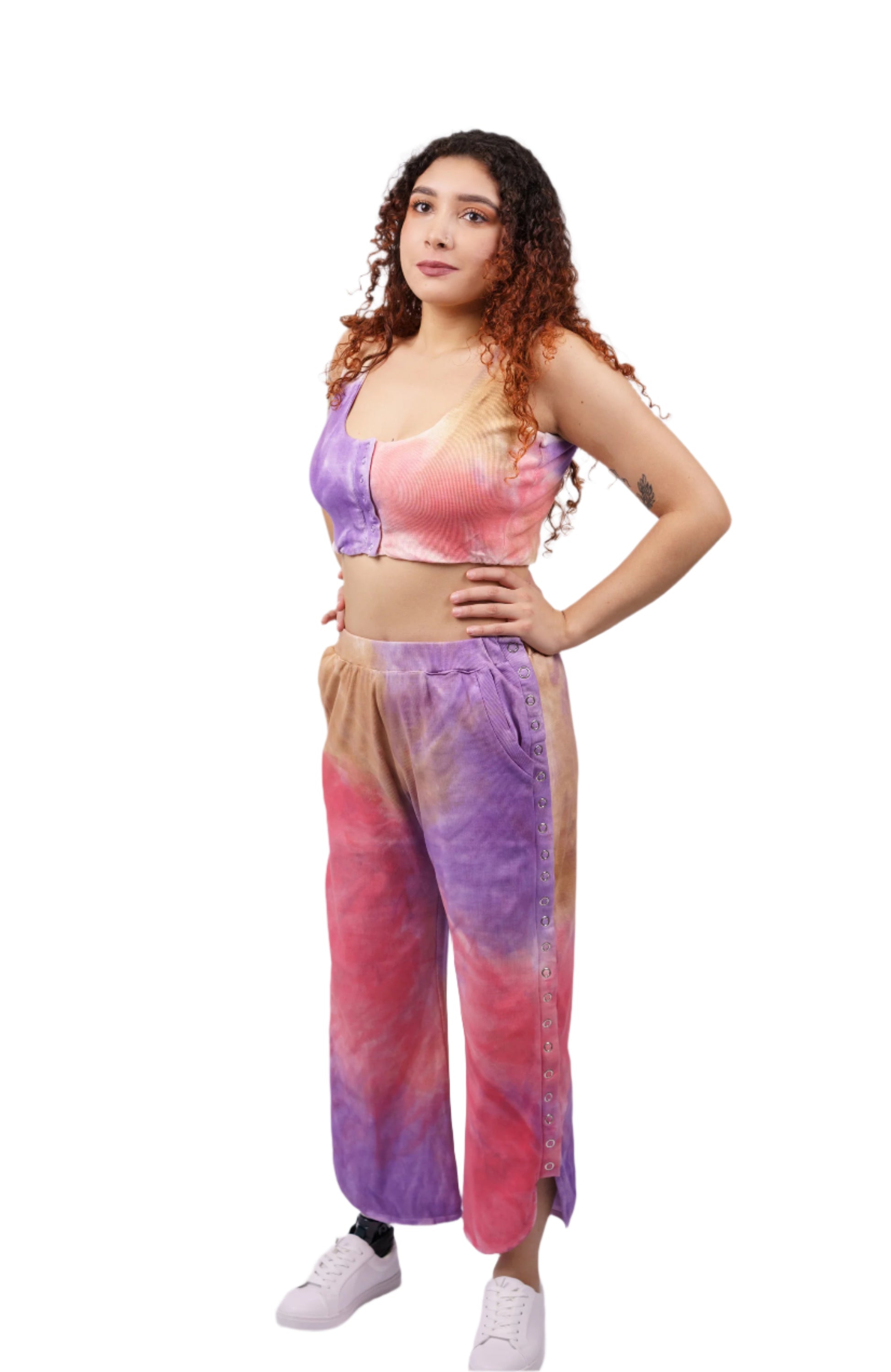 Tie-Dyed Full Side Seam Opening on Snaps Adaptive Pants