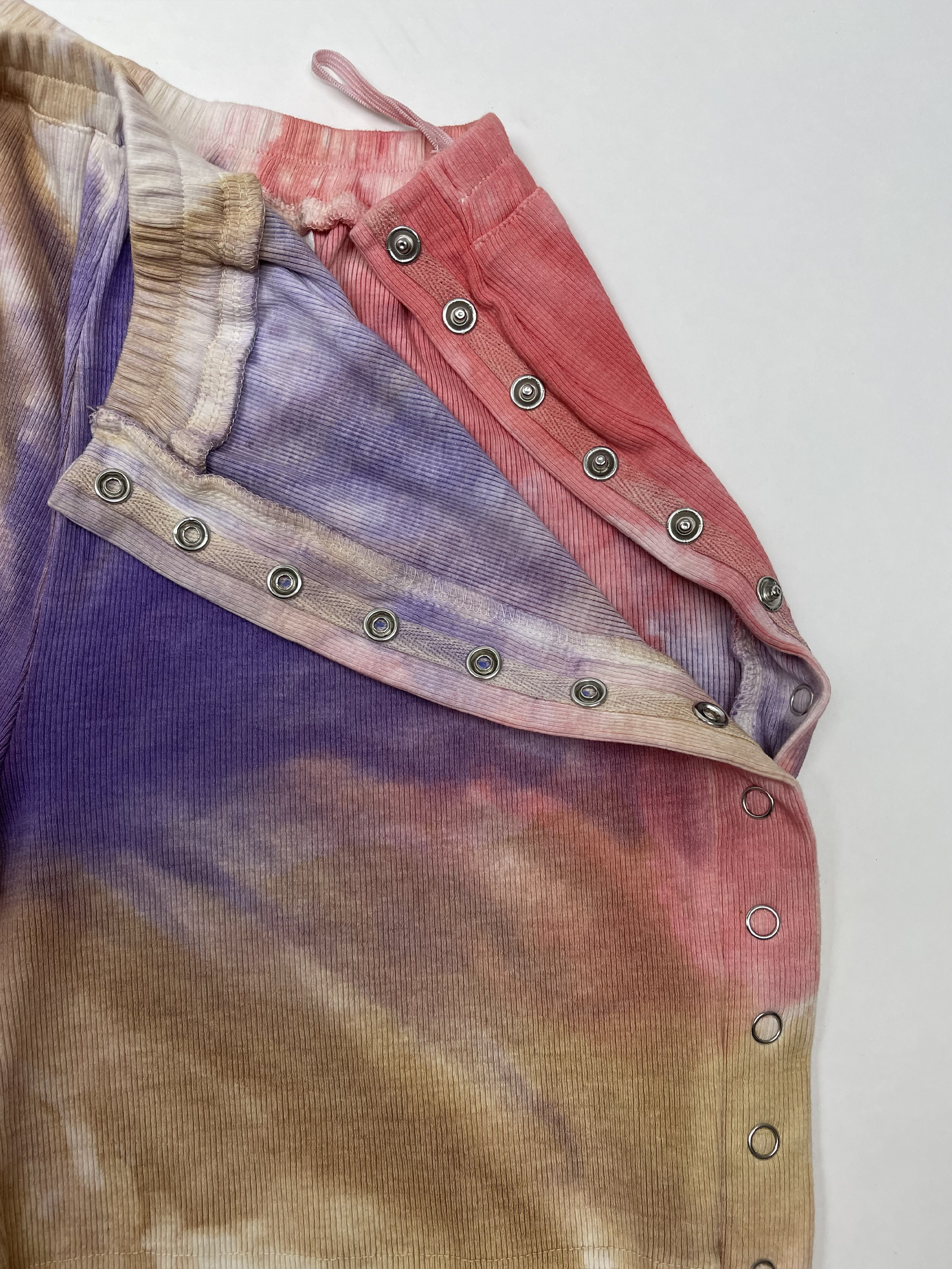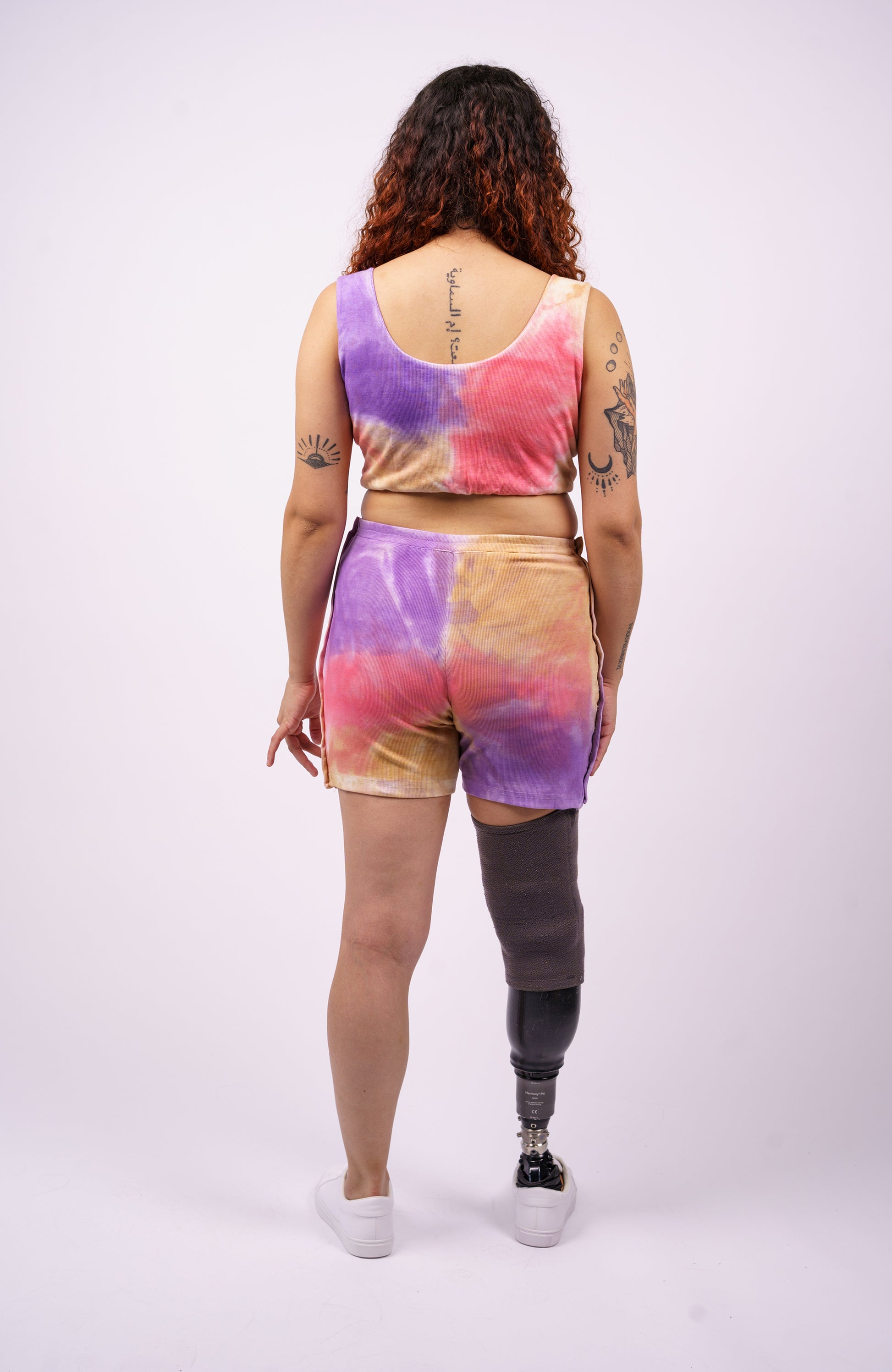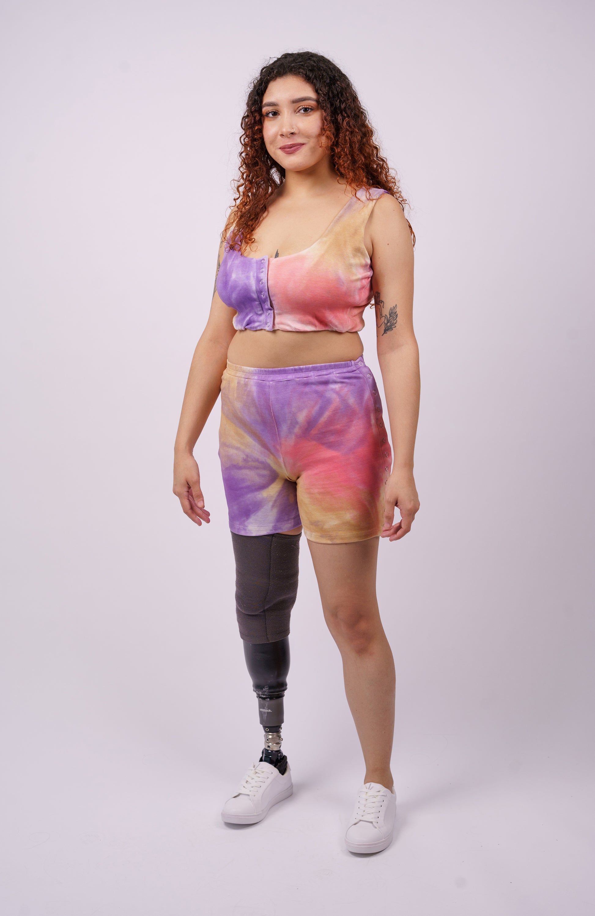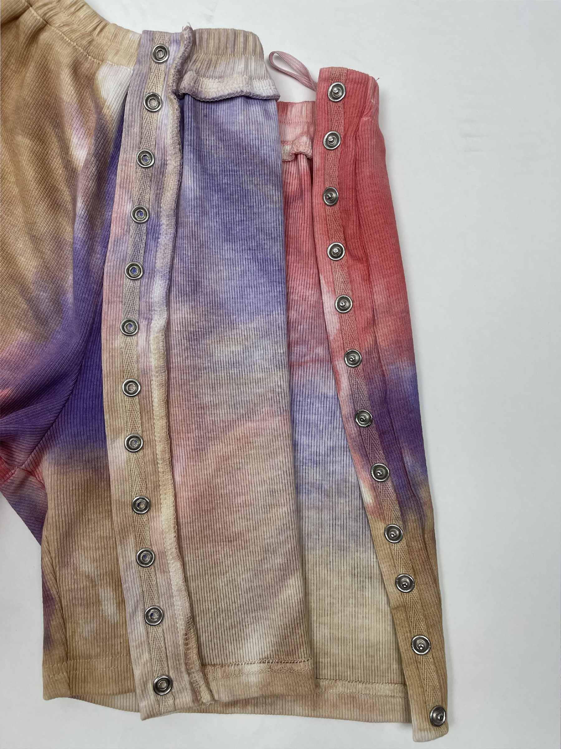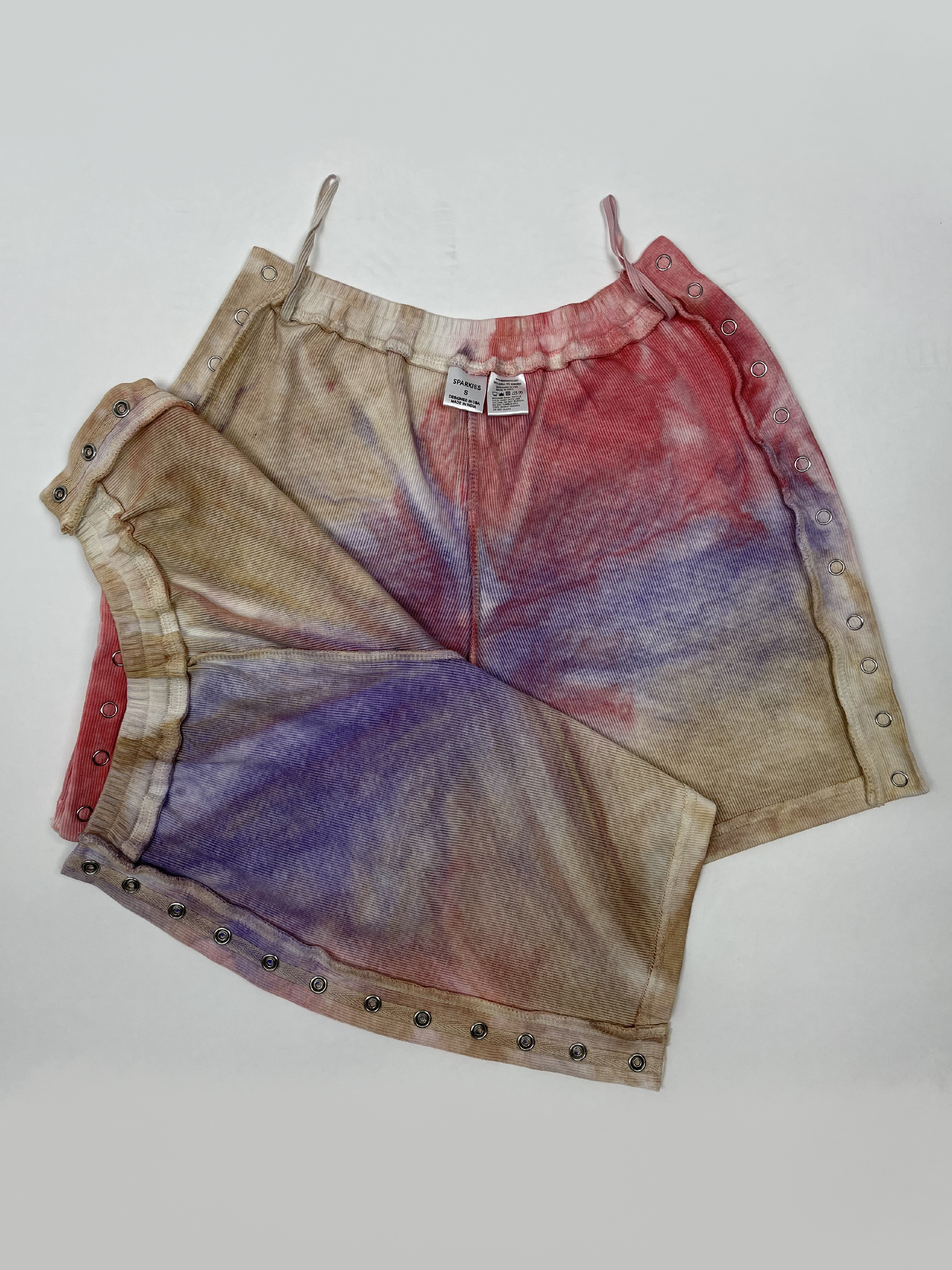 Tie-Dyed Adaptive Shorts with Full Side Seam Opening on Snaps