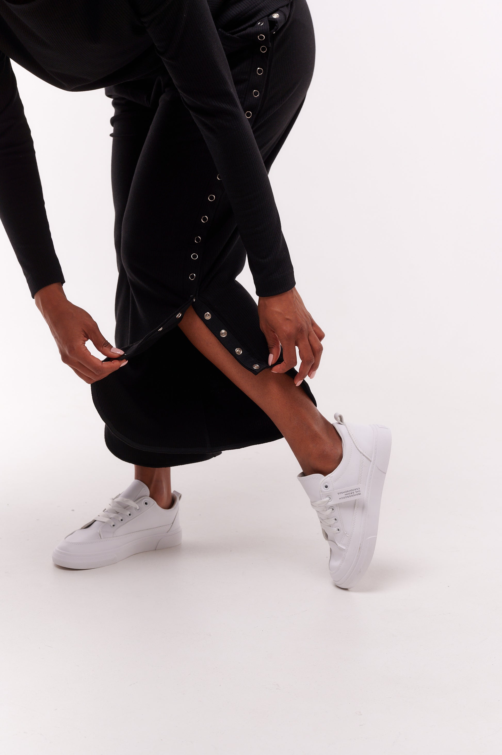 - Snap closure. Full side seam opening.