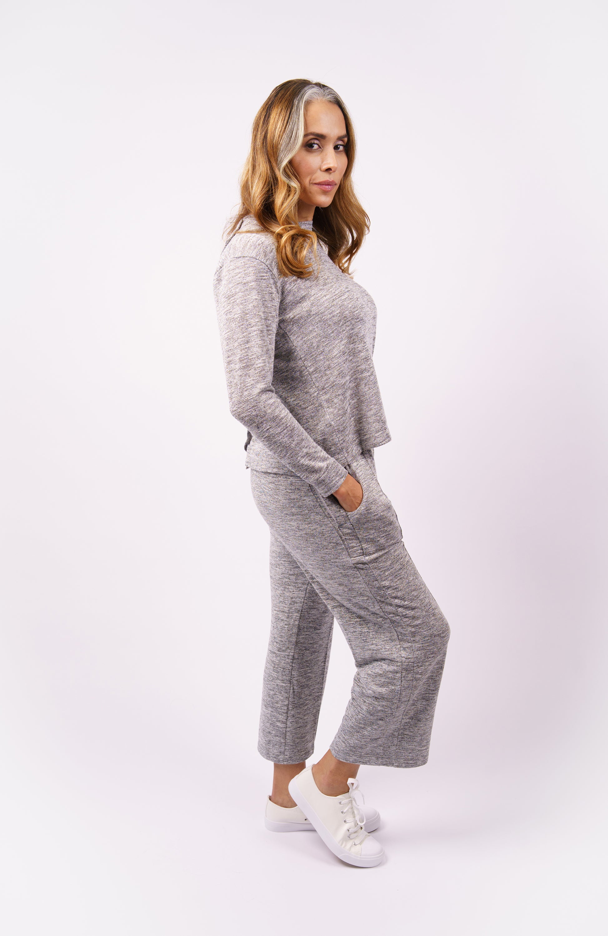These pants are very soft and have a good stretch. The side opening on hips make them accessible for hip recovery from surgery and so on. Like it.